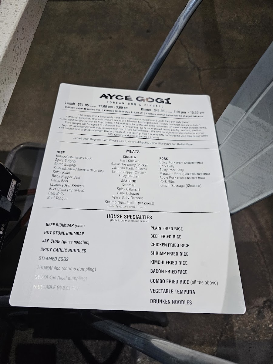 Welcome to AYCE GOGI in the scenic West Hills, CA, where the vibrant flavors of Korean barbecue come alive in an inviting and lively dining atmosphere. Nestled at 6705 Fallbrook Ave, this gem is not just a restaurant; it's a culinary experience that celebrates the art of grilling with friends and family.